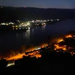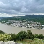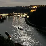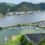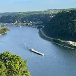 Situada a uma distância de 4.7 km de Vale do Alto Médio Reno, Grosszuegiges Ferienhaus 170 Qm, 10 Gaeste, 30 Qm Sonnenterrasse, Eingezaeunter Hof, Klima, Kamin, Hundefreundlich Kestert convida os hóspedes a relaxar num terraço.